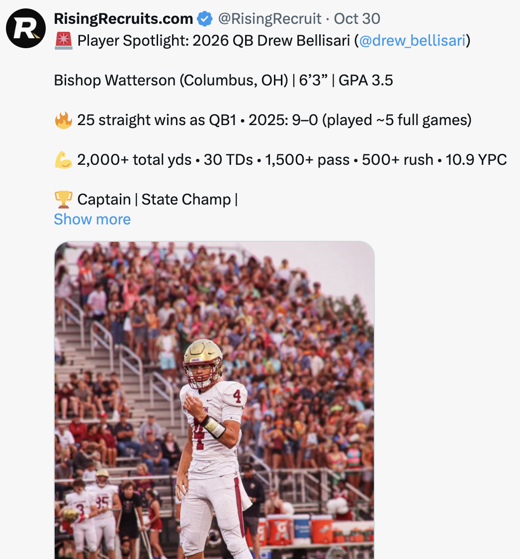 A full 7-day promotion push, coach/teammate tagging, highlight link integration, and guaranteed inclusion in the Rising Recruits Report.